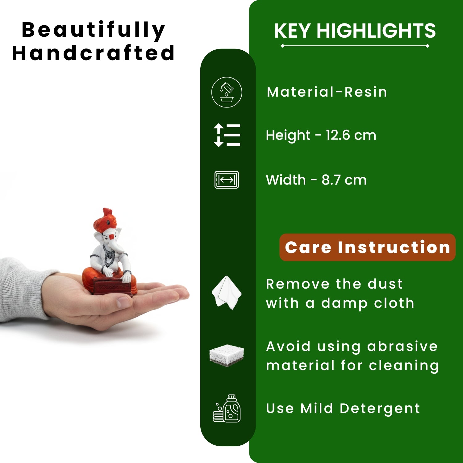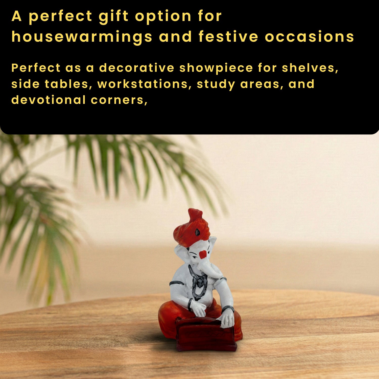 'Divine Harmonium Ganesha' Decorative Showpiece Figurine (Resin, Hand-Crafted, 12.6 Cm)