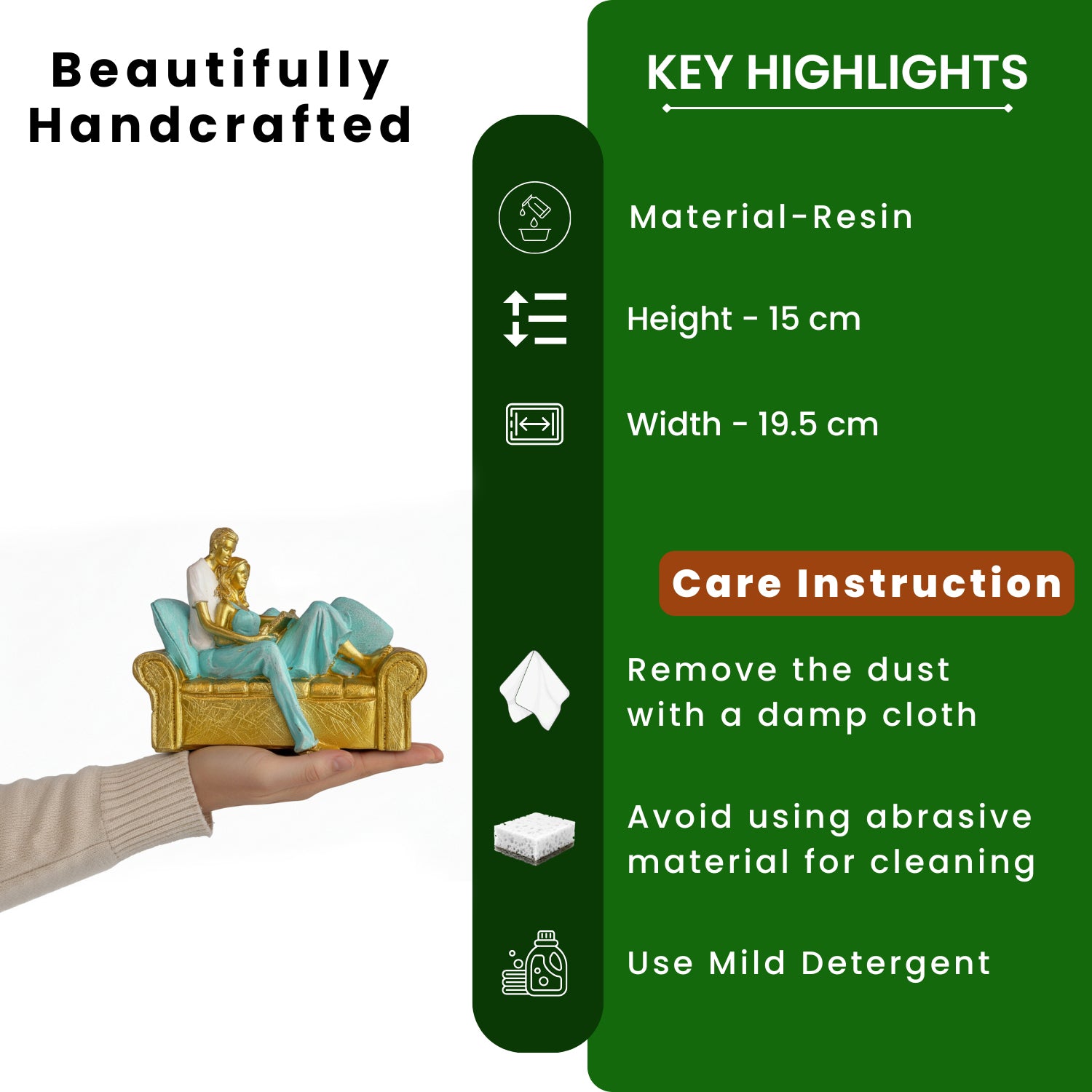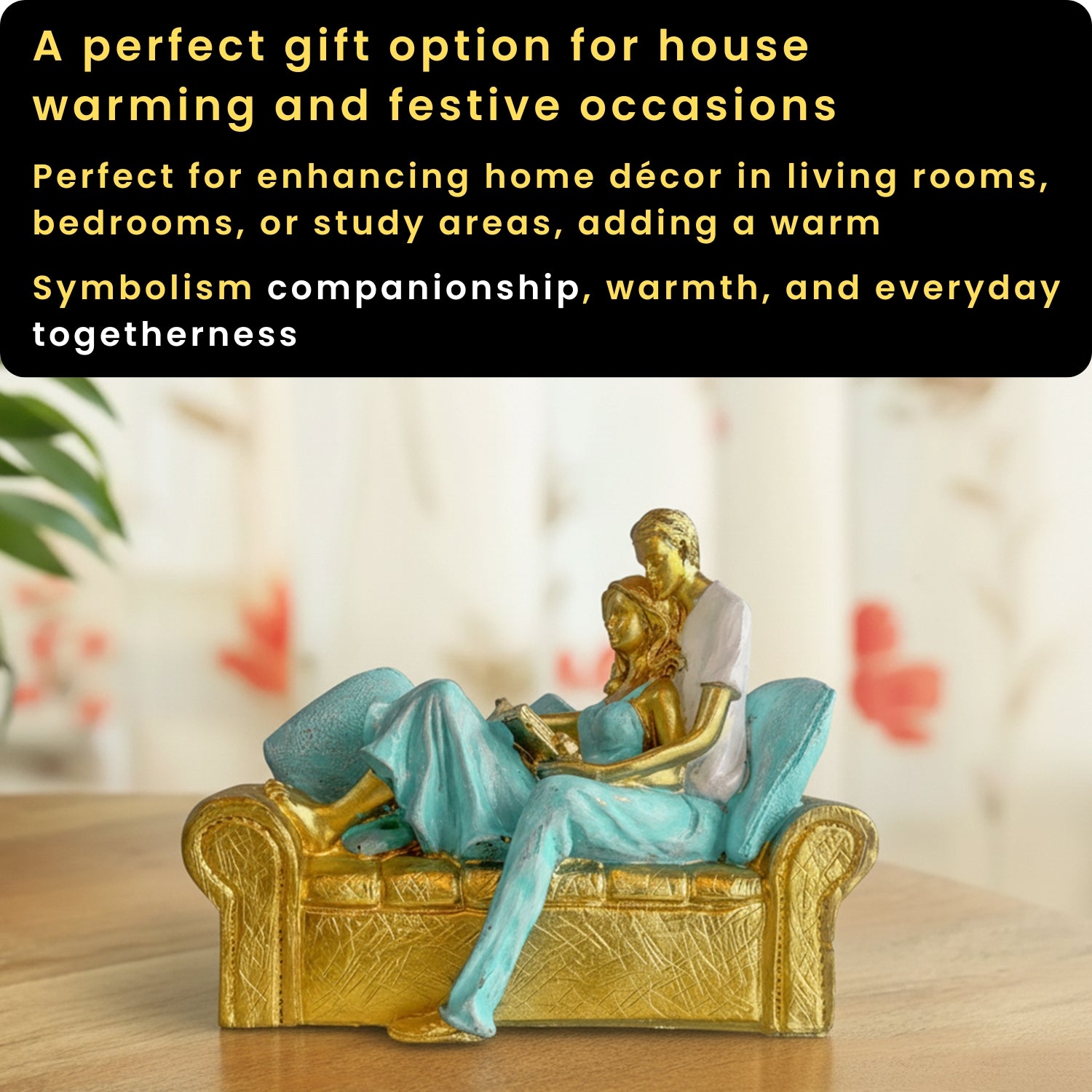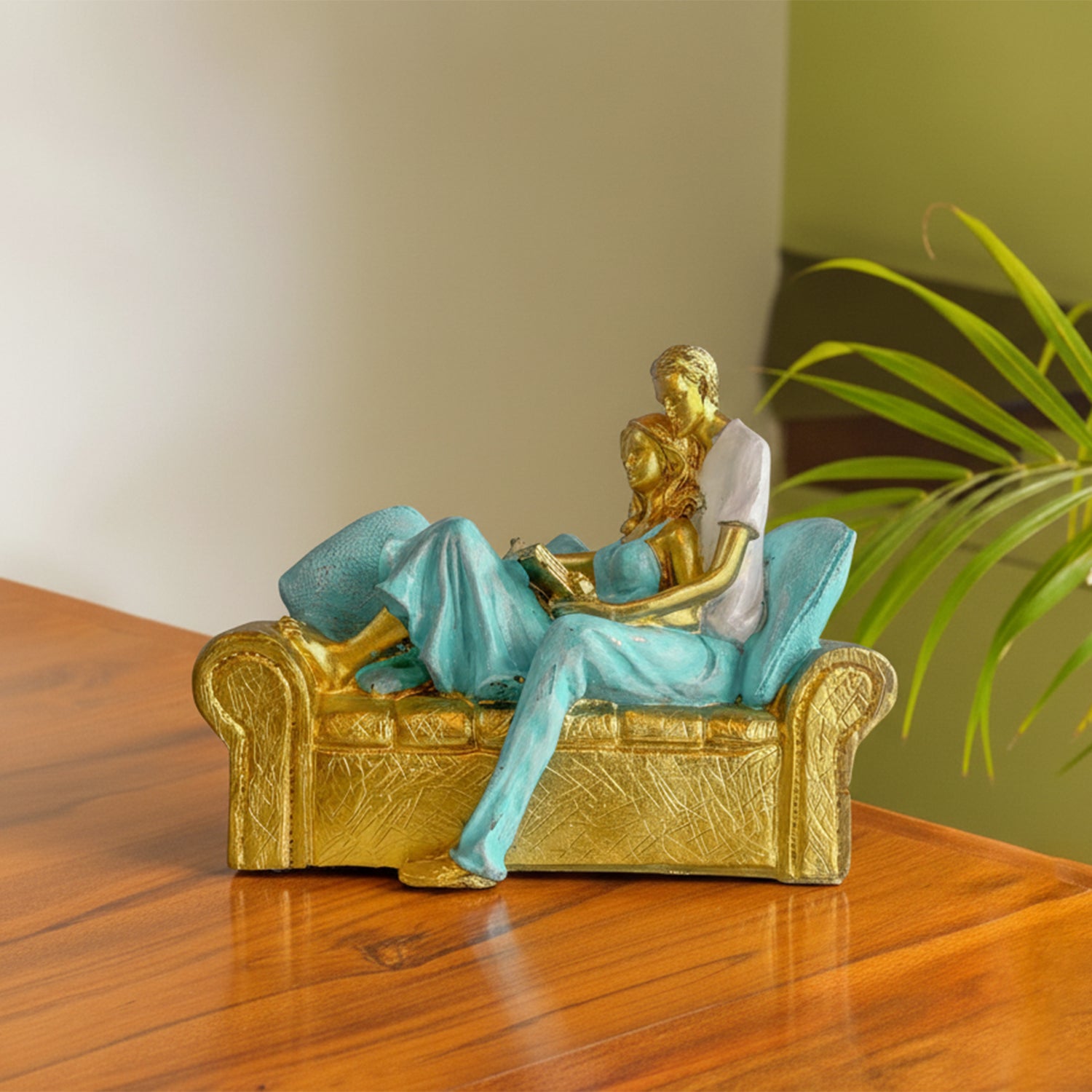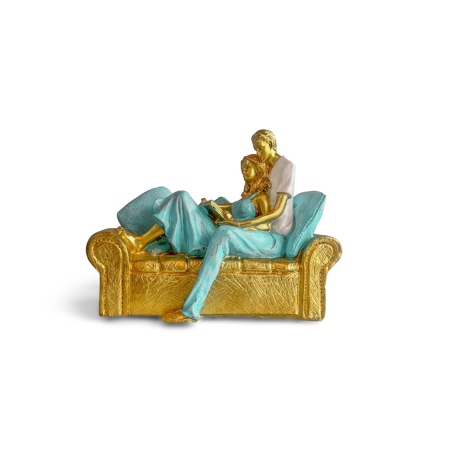 'Shared Stories' Romantic Couple Resin Decorative Showpiece Figurine (Hand-Crafted, 15 Cm)