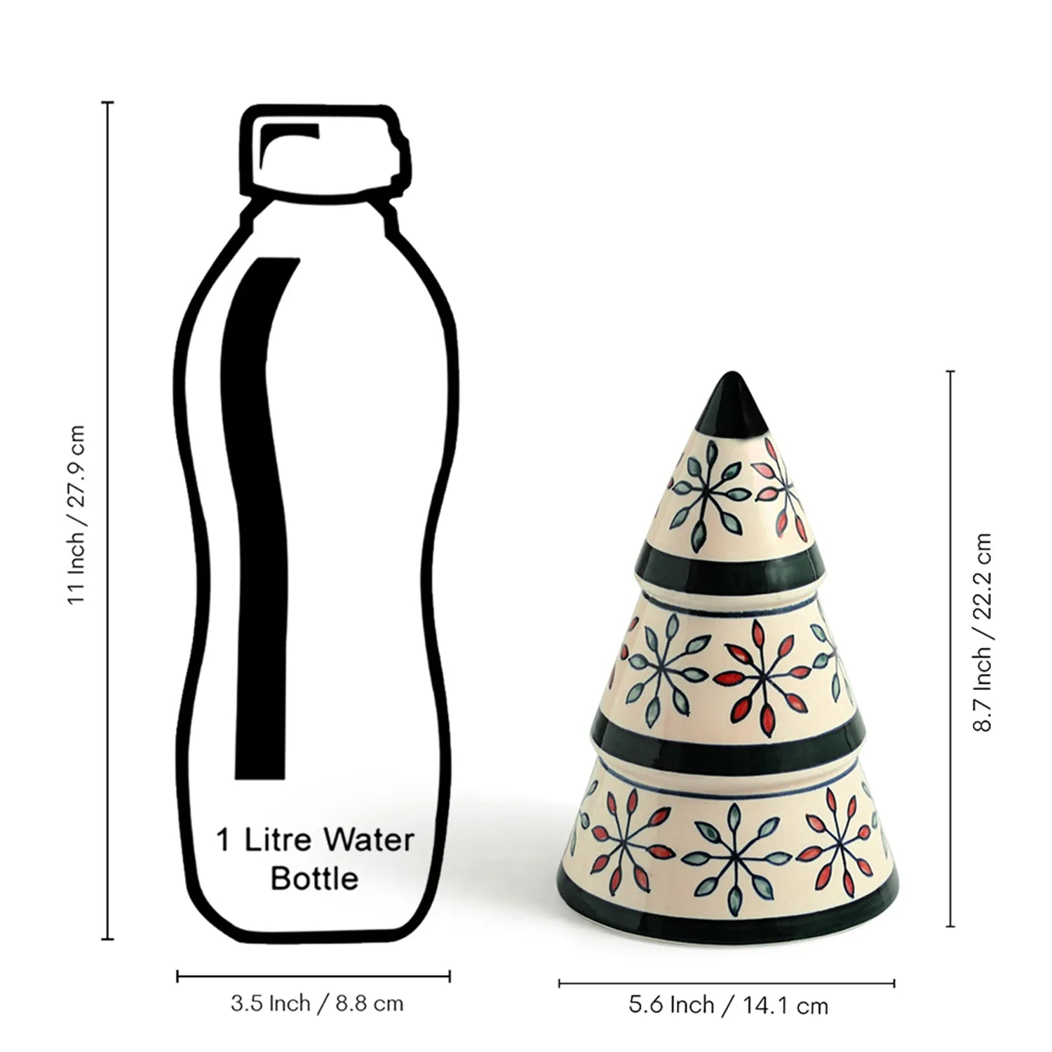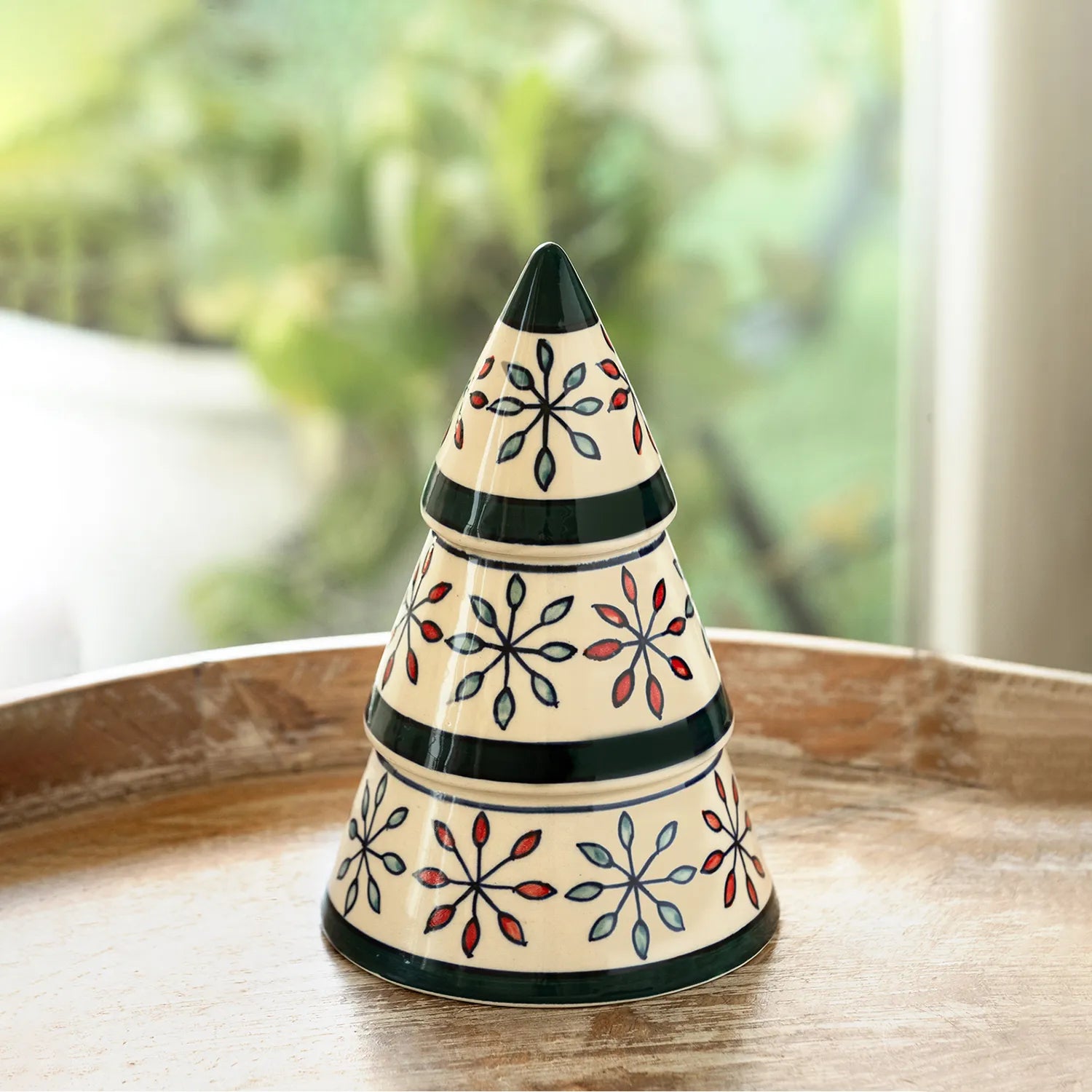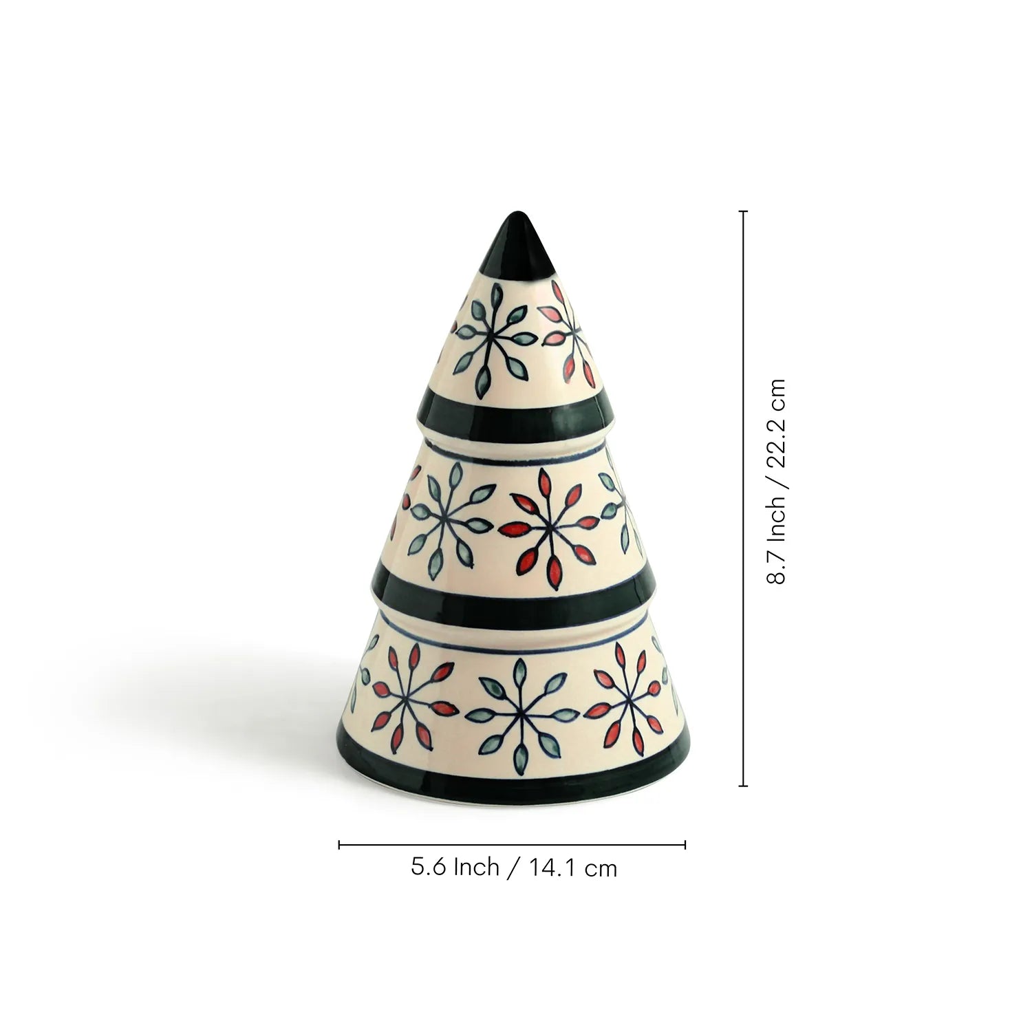ExclusiveLane 'Starry Christmas Tree' Ceramic Decorative Showpiece Sculpture (Hand-Painted, 22.2 Cm)