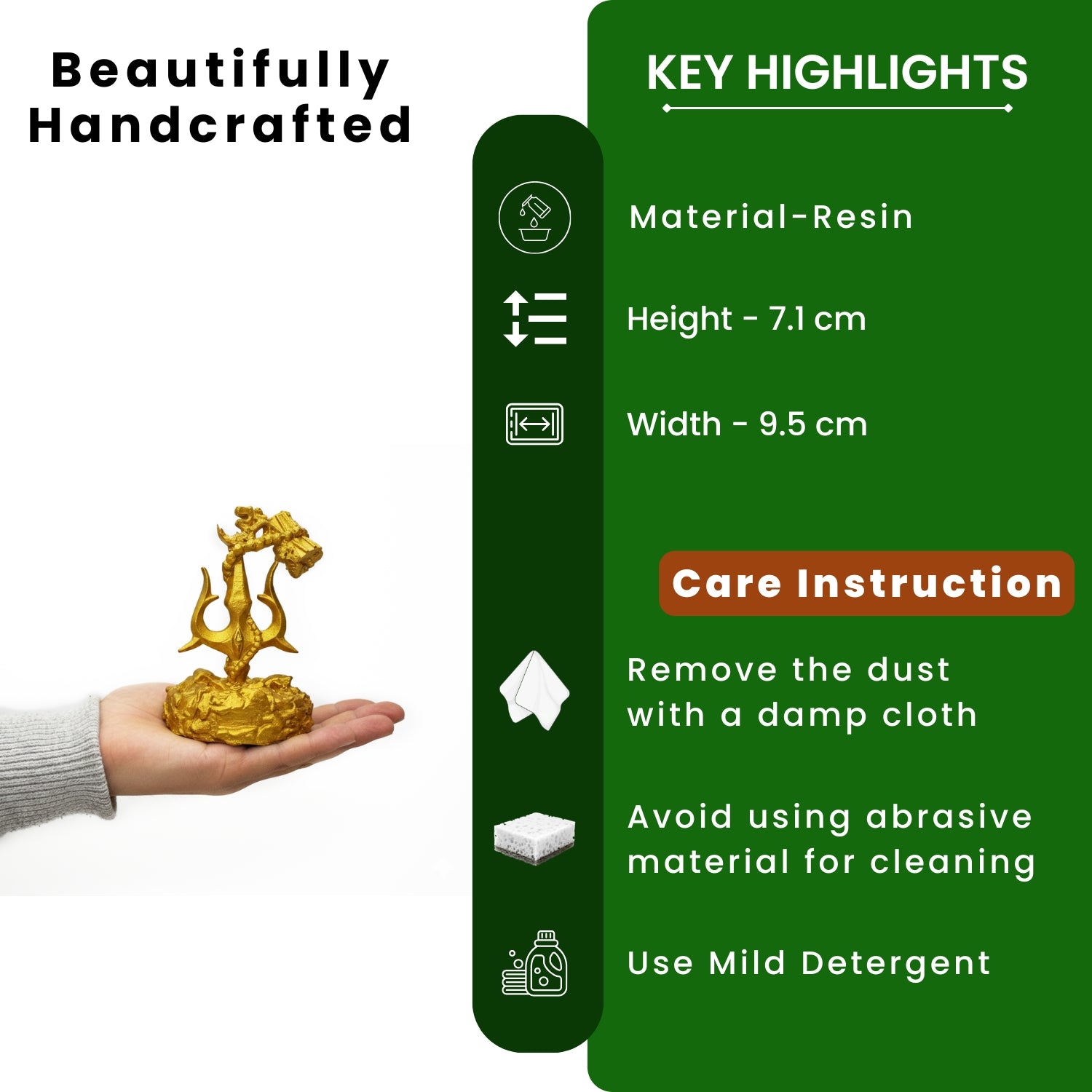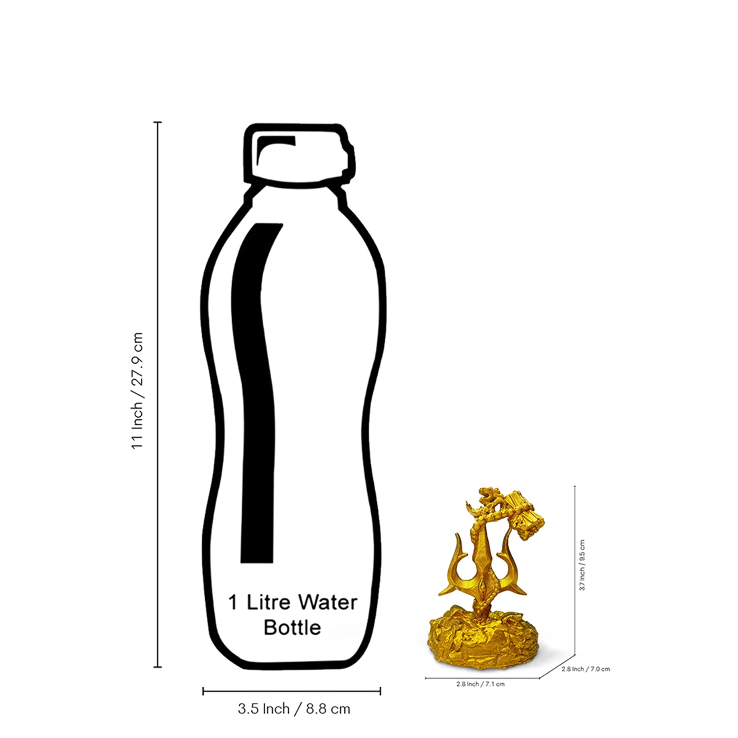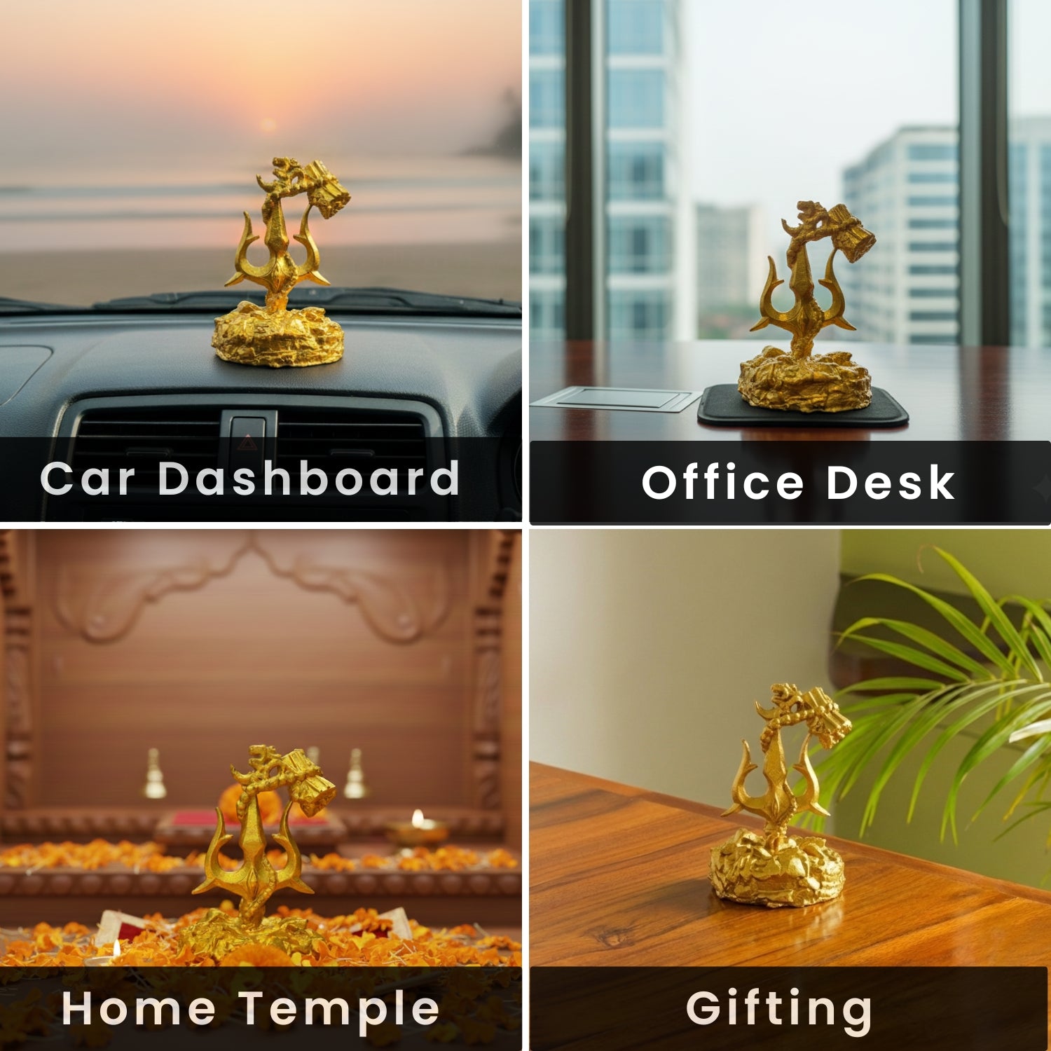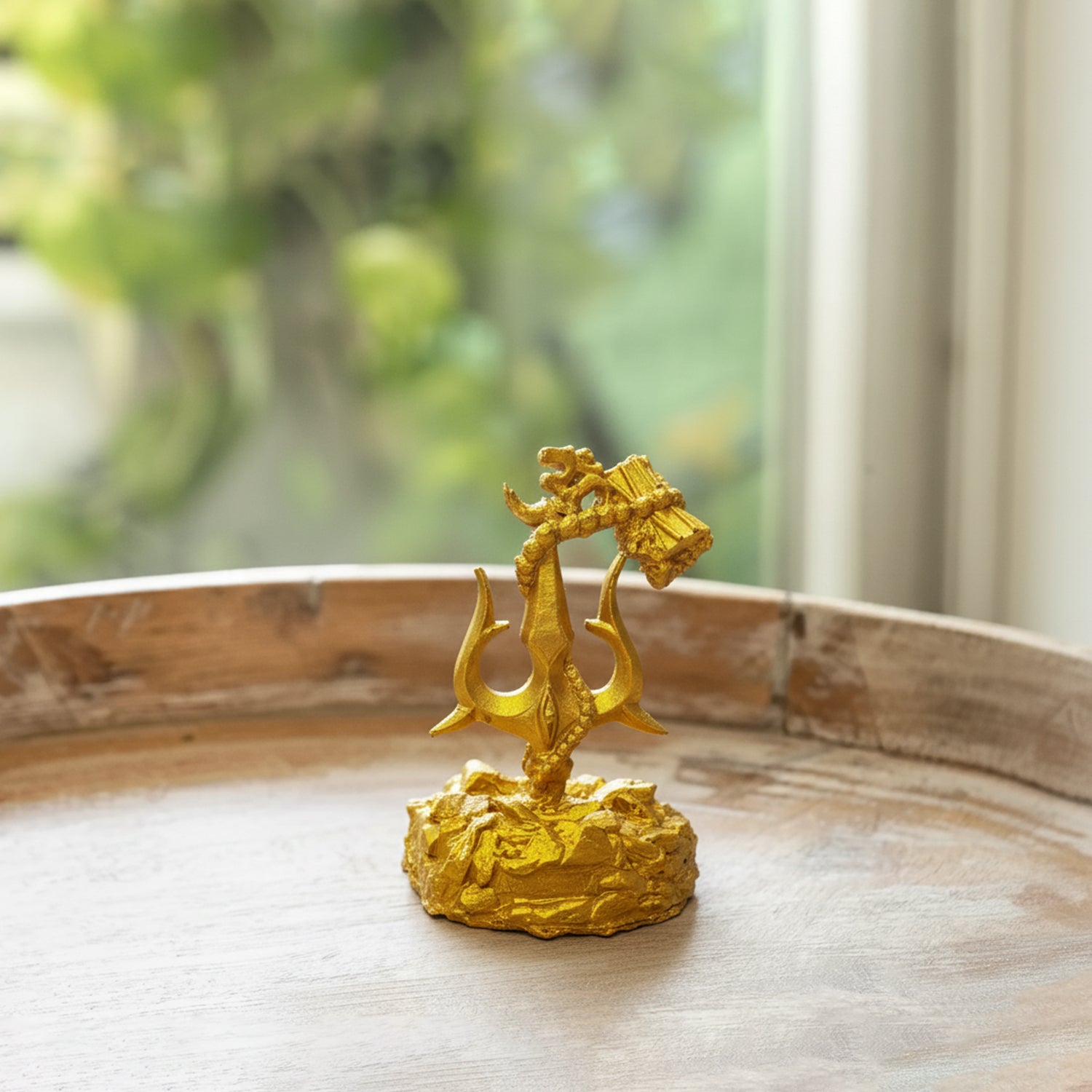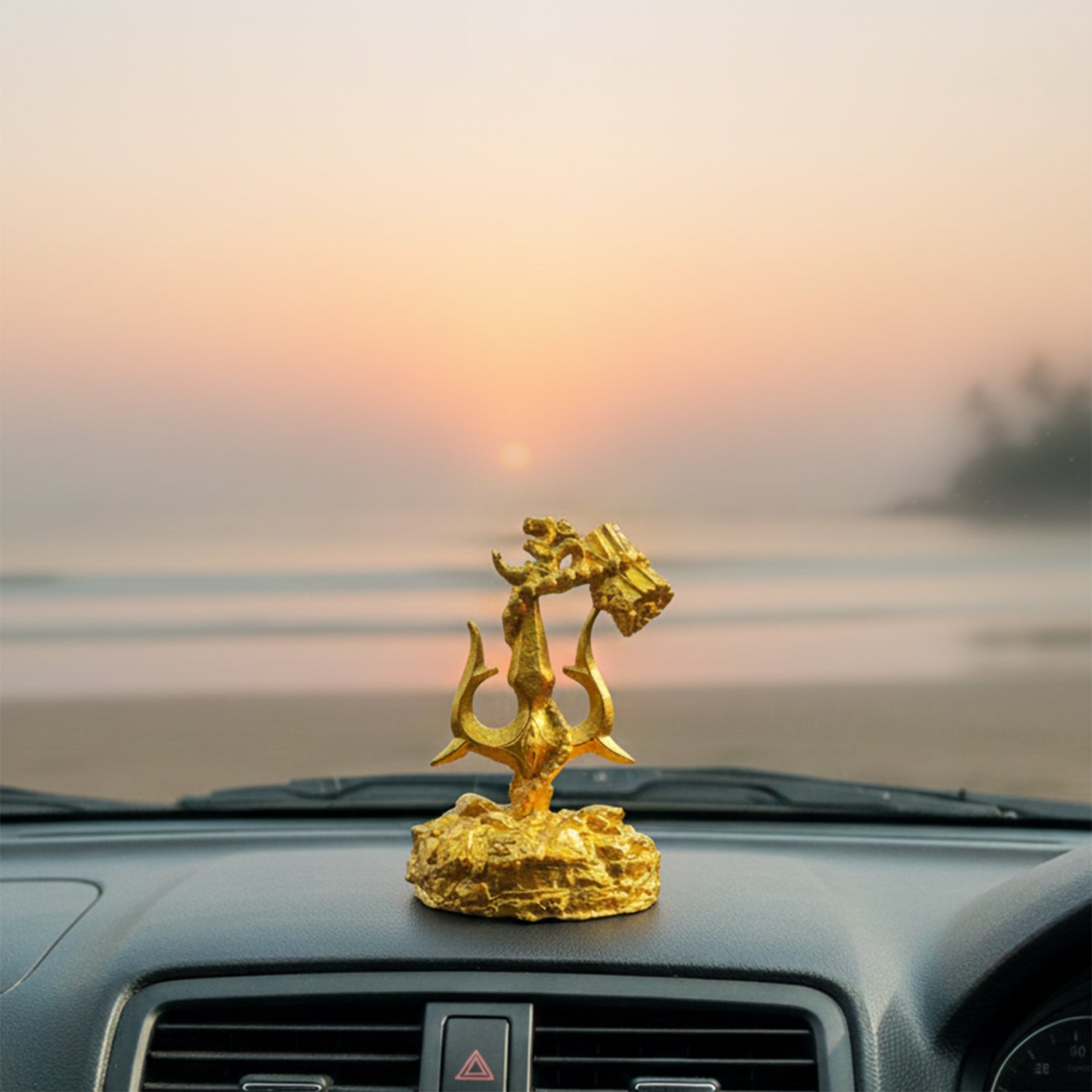 'Trishul With Damru' Decorative Showpiece Figurine For Car Dashboard (Resin, Hand-Crafted, 9.5 Cm )