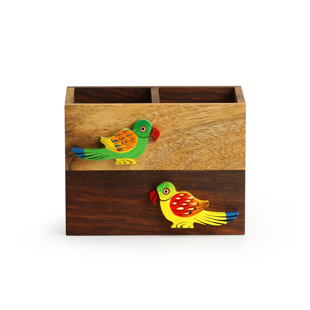 'Birds Of A Feather' Cutlery Cum Napkin Holder In Sheesham & Mango Wood
