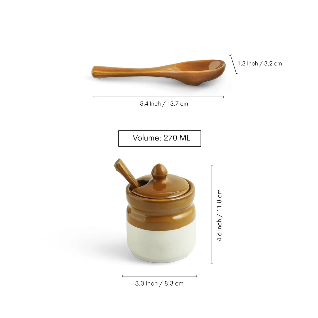 ExclusiveLane 'Barni Tales' Multi-Purpose Ceramic Pickle & Chutney Jar Set With Spoons (Set Of 2, Non-Airtight, 270 ML, Hand-Glazed)