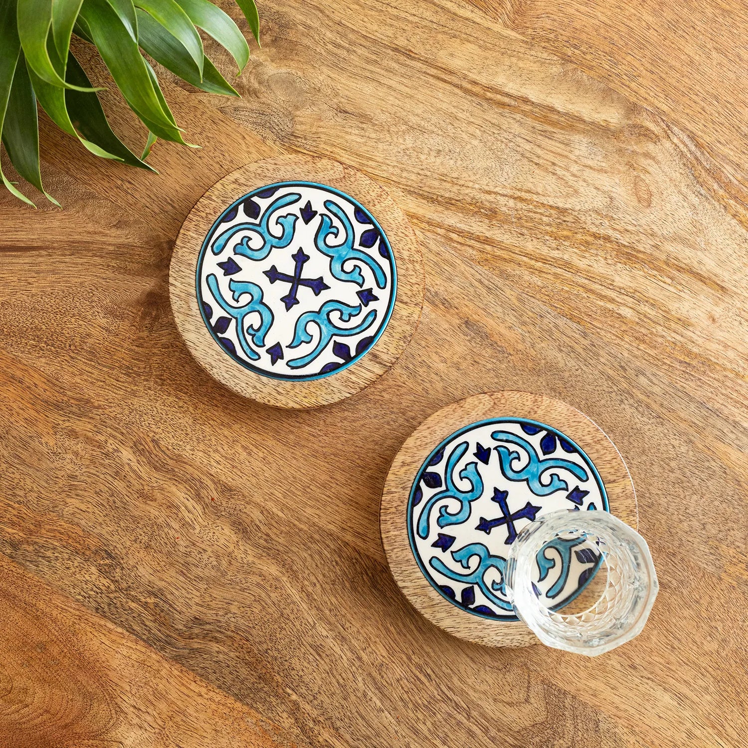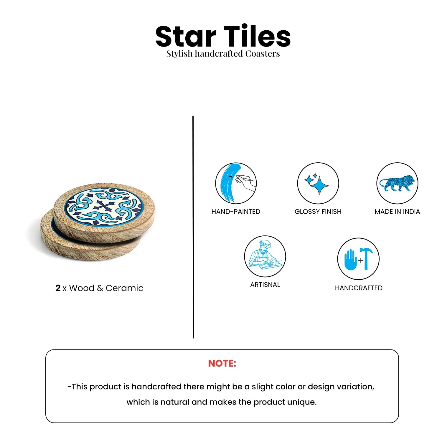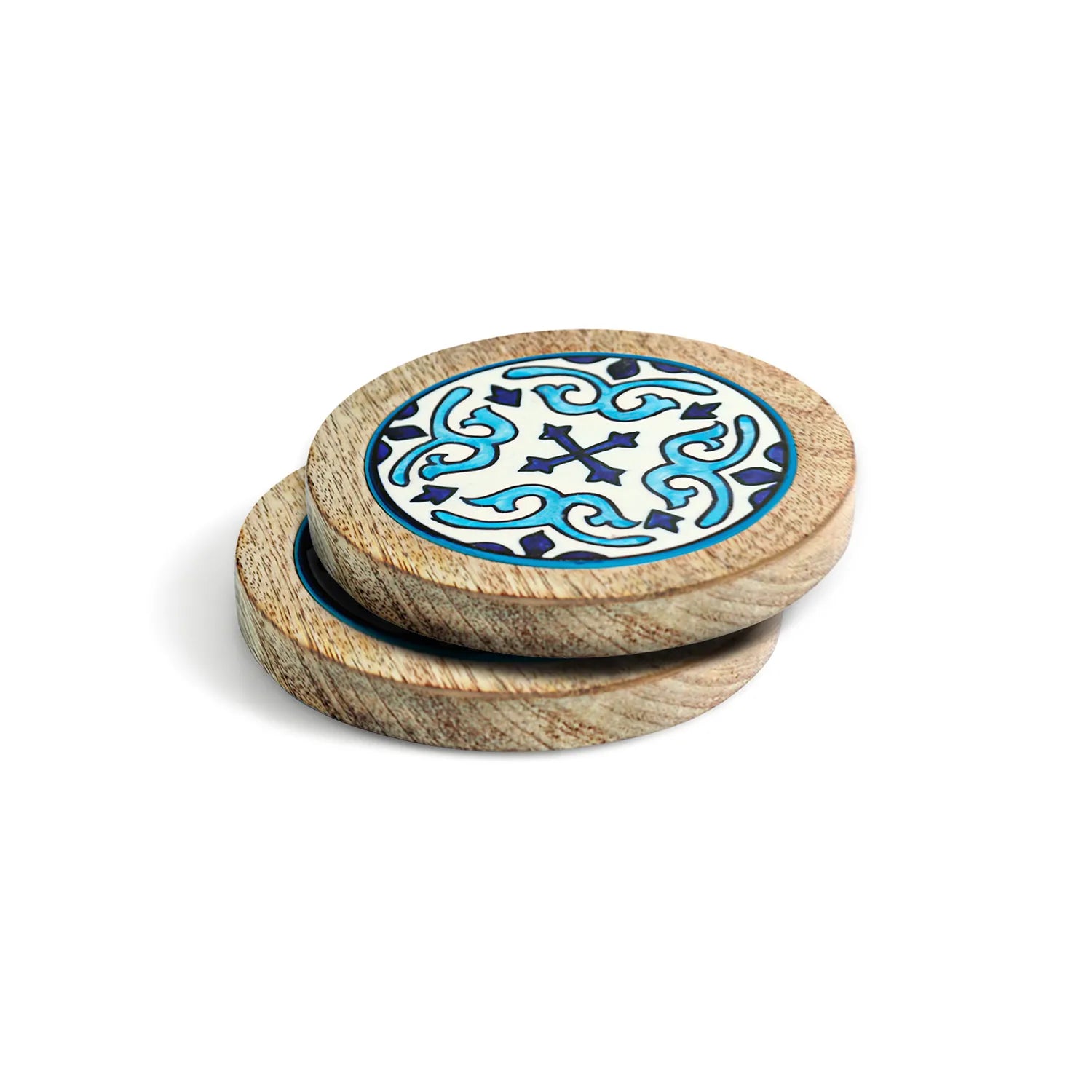 ExclusiveLane 'Star Tiles' Wooden & Ceramic Tea Coasters (Set Of 2, Hand-Painted)