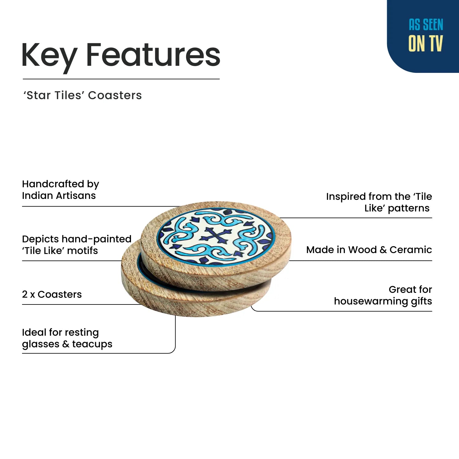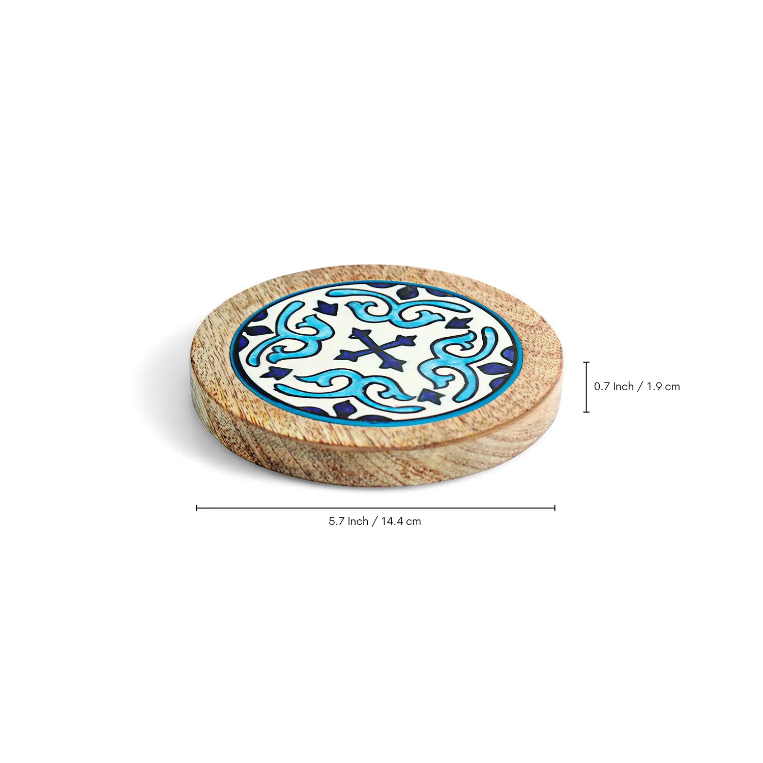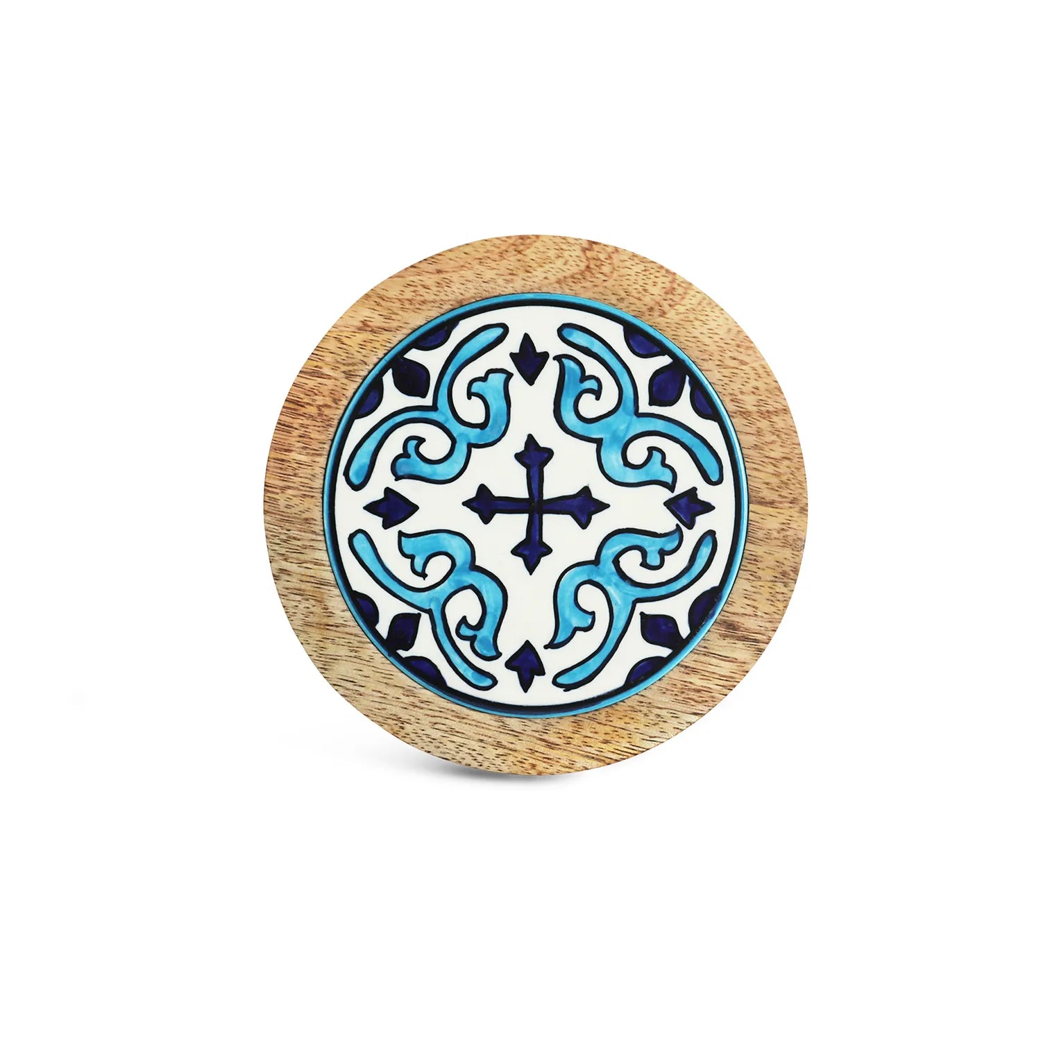 ExclusiveLane 'Star Tiles' Wooden & Ceramic Tea Coasters (Set Of 2, Hand-Painted)