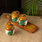 'Shades of a Leaf' Hand-Painted Ceramic Jars With Tray (Set of 3, 220 ml)