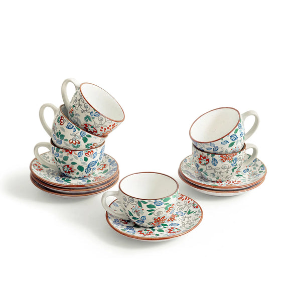 Ceramic cutlery has a very charming yet elegant appearance. Our exquisite hand-painted and hand-engraved ceramic tea cups and saucers come in a variety of attractive designs, including "Mughal floral," "Arabian nights," "Peacock Boulevard," and others. Get yourself a tea cup set of 6 with the latest design.