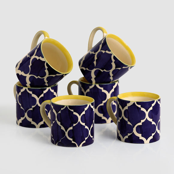 Teacups should be made of glass or porcelain because neither will alter the flavour of your tea. Although thick containers do a good job of keeping heat for a while, they are unpleasant to the mouth. ExclusiveLane offers a wide variety of ceramic tea cup sets of 6. Choose the options that best suit your preferences.