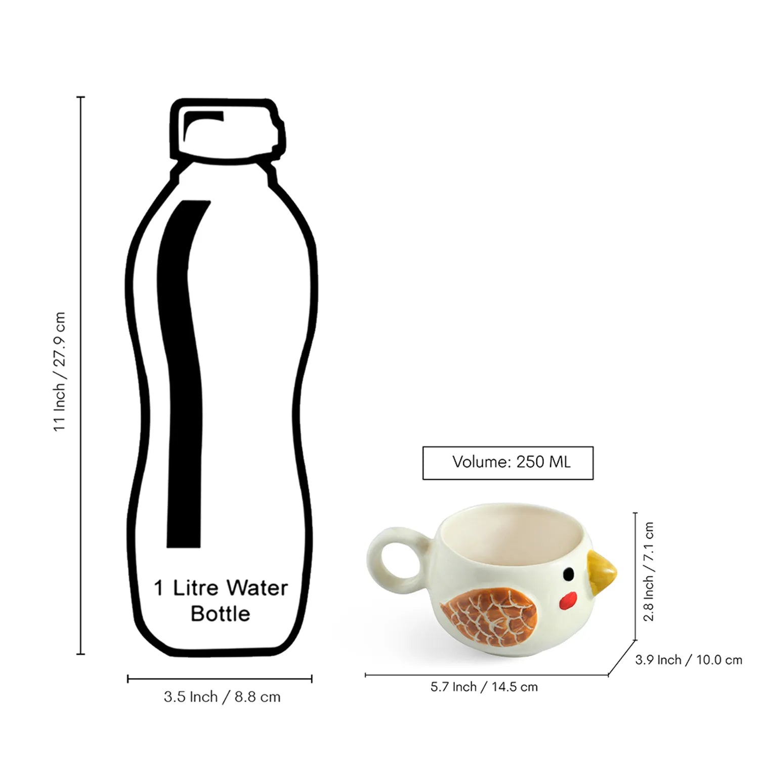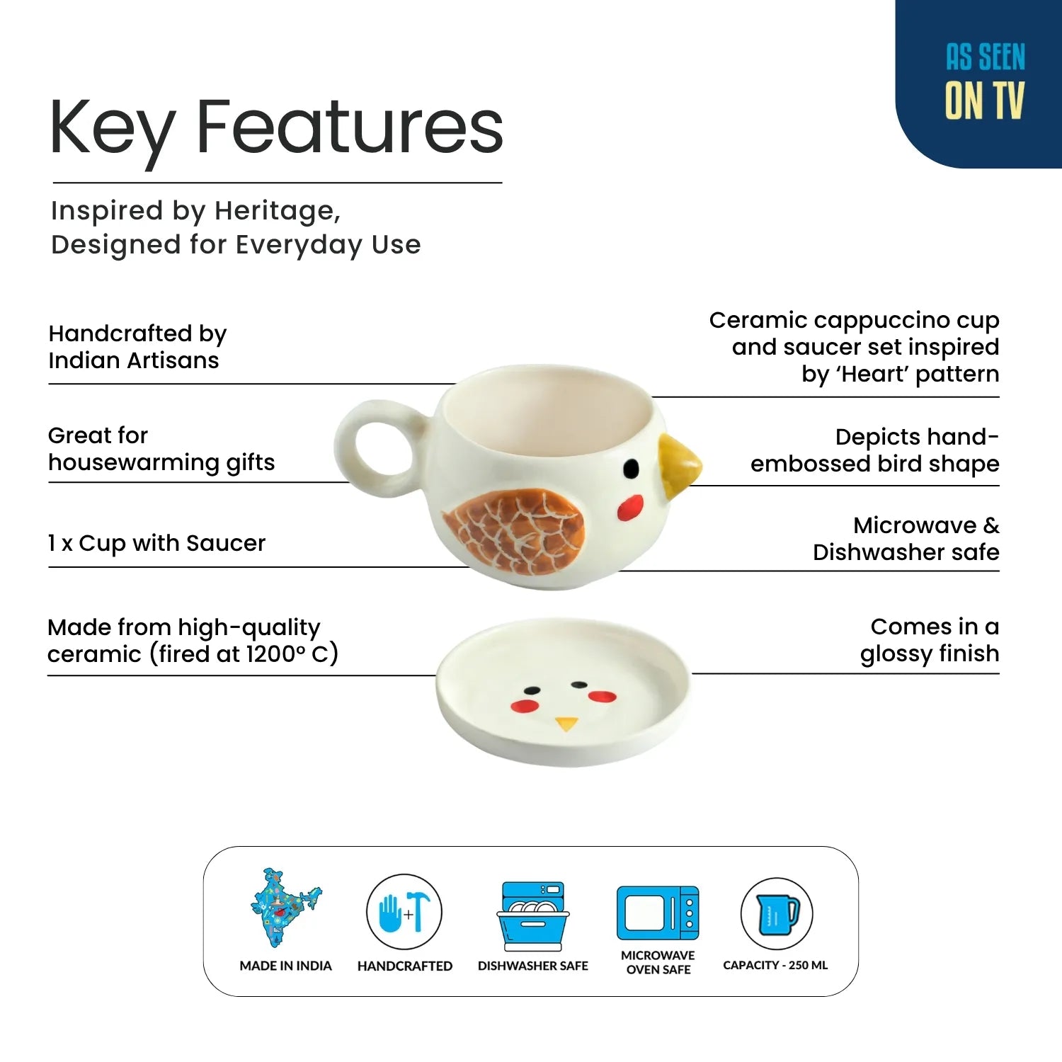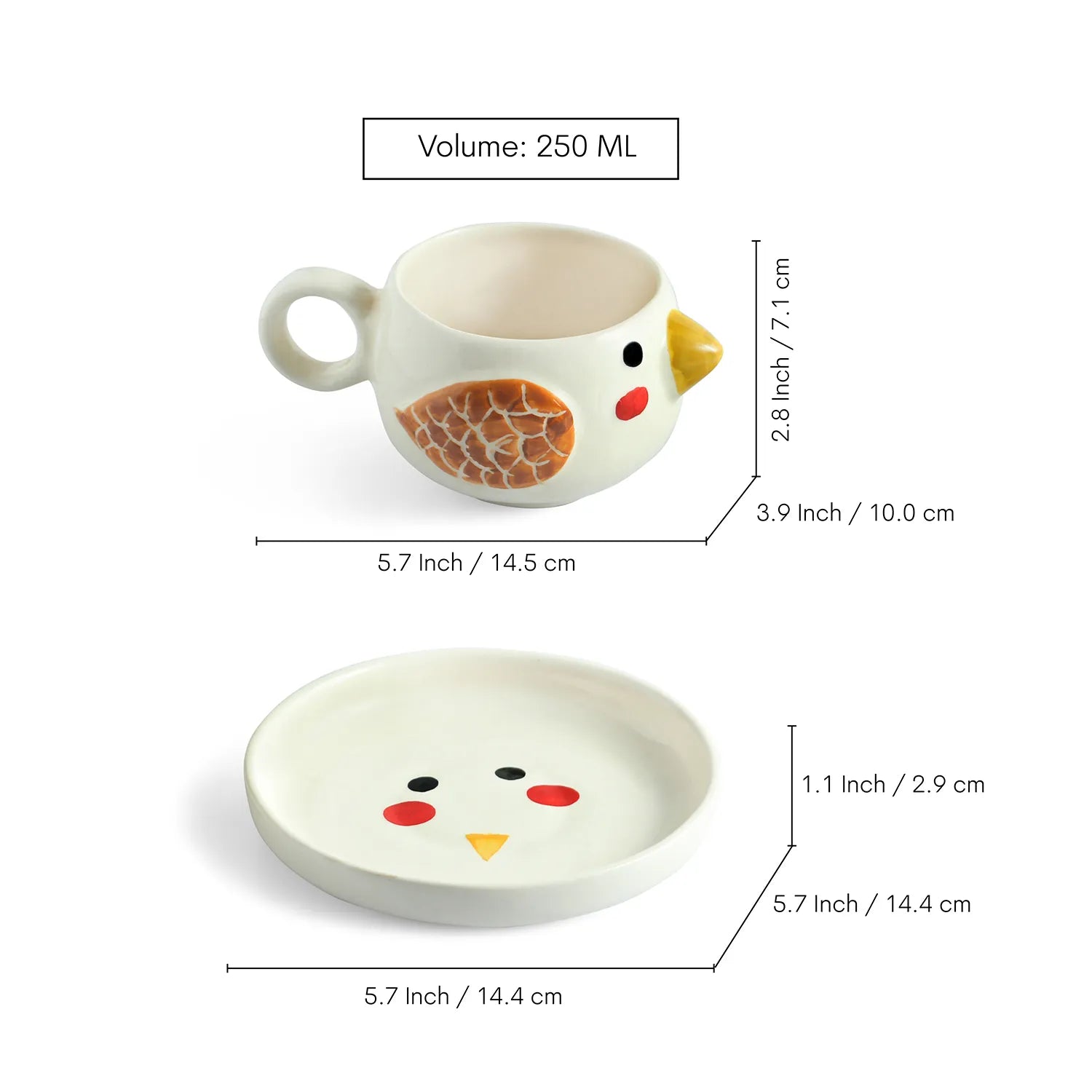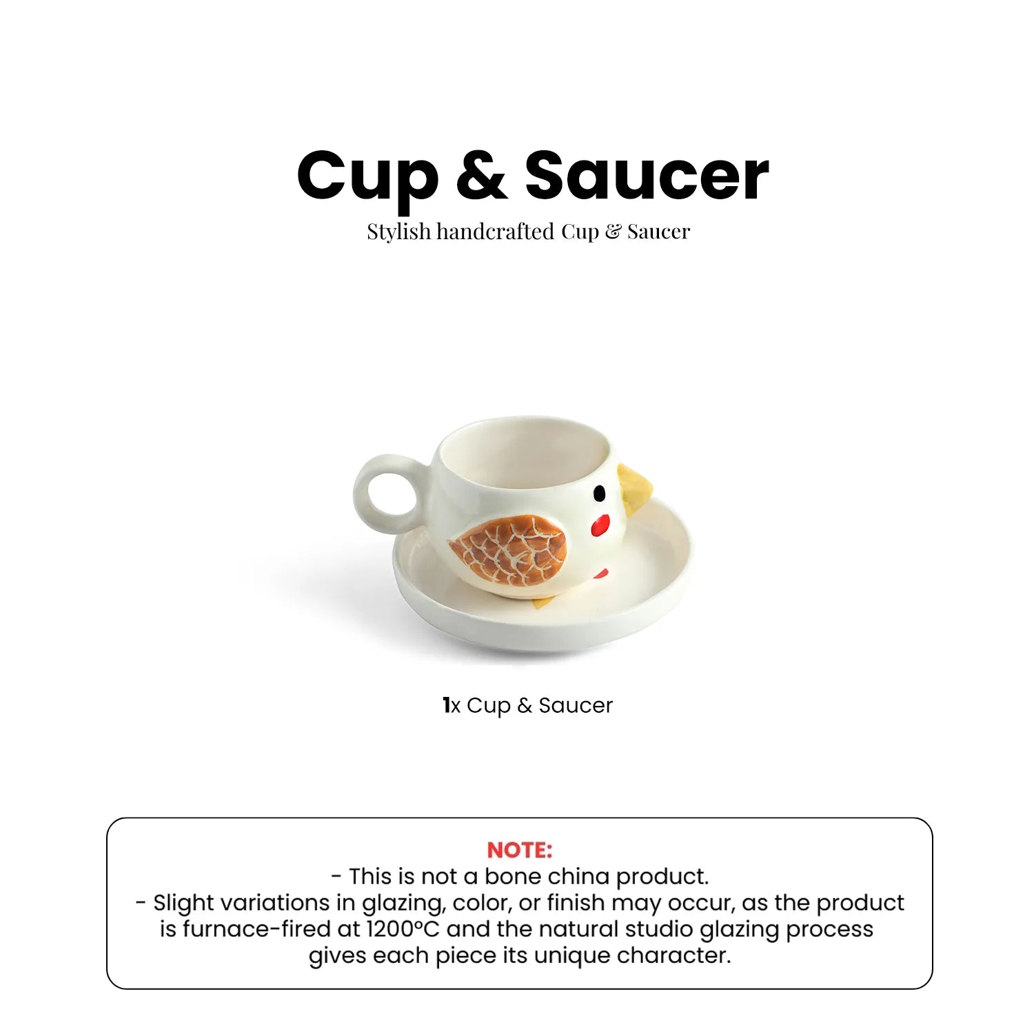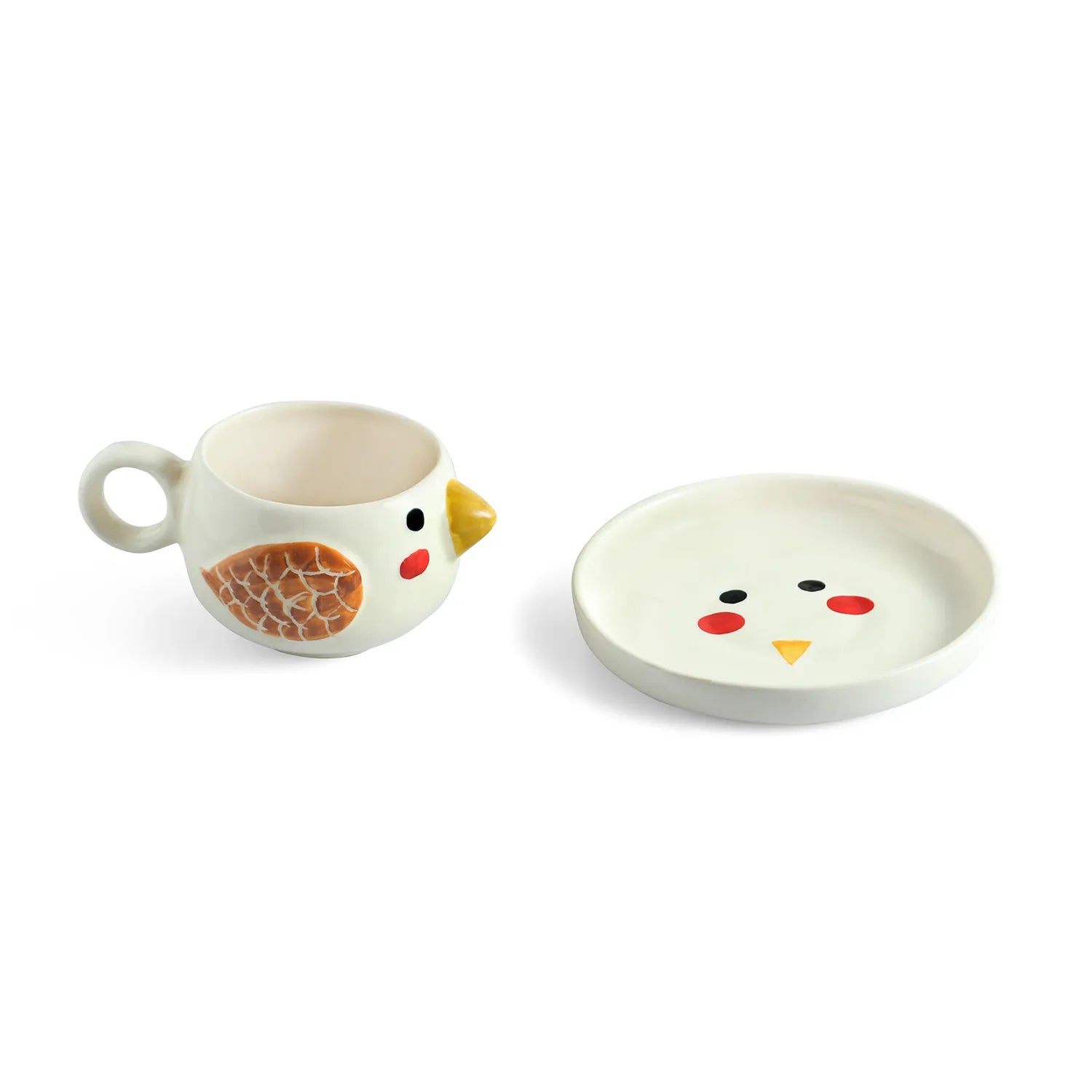 ExclusiveLane 'Pooky Bird' Ceramic Cup & Saucer For Coffee & Tea (250 ML, Microwave Safe, Hand-Painted)
