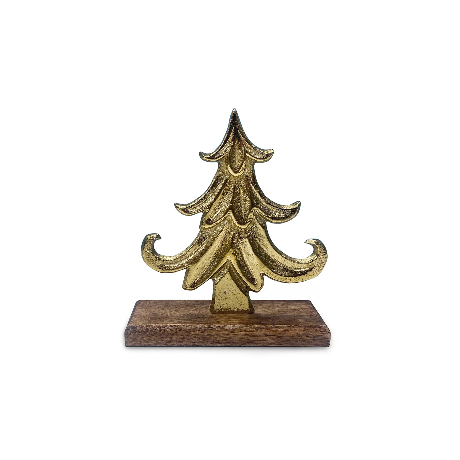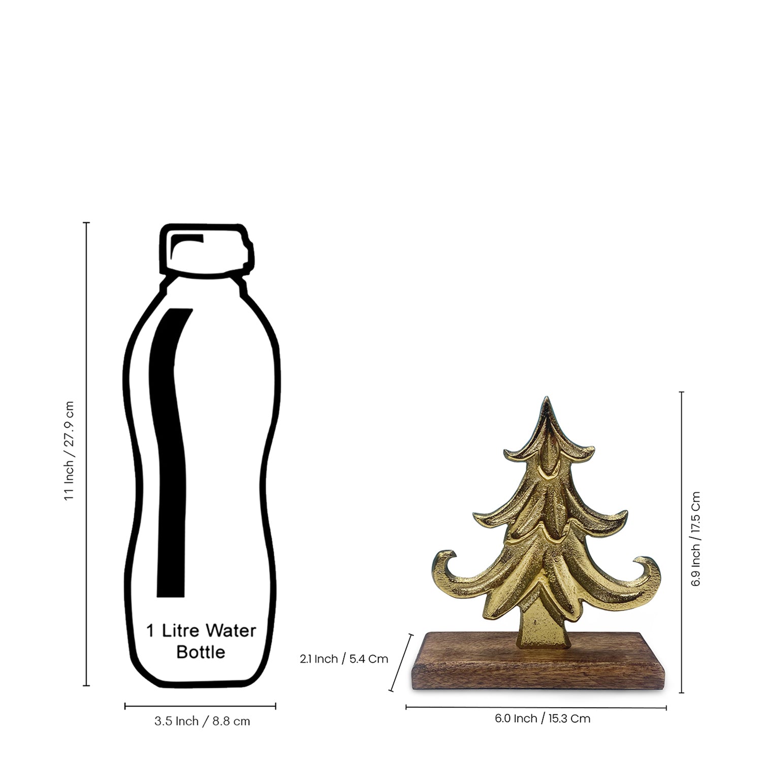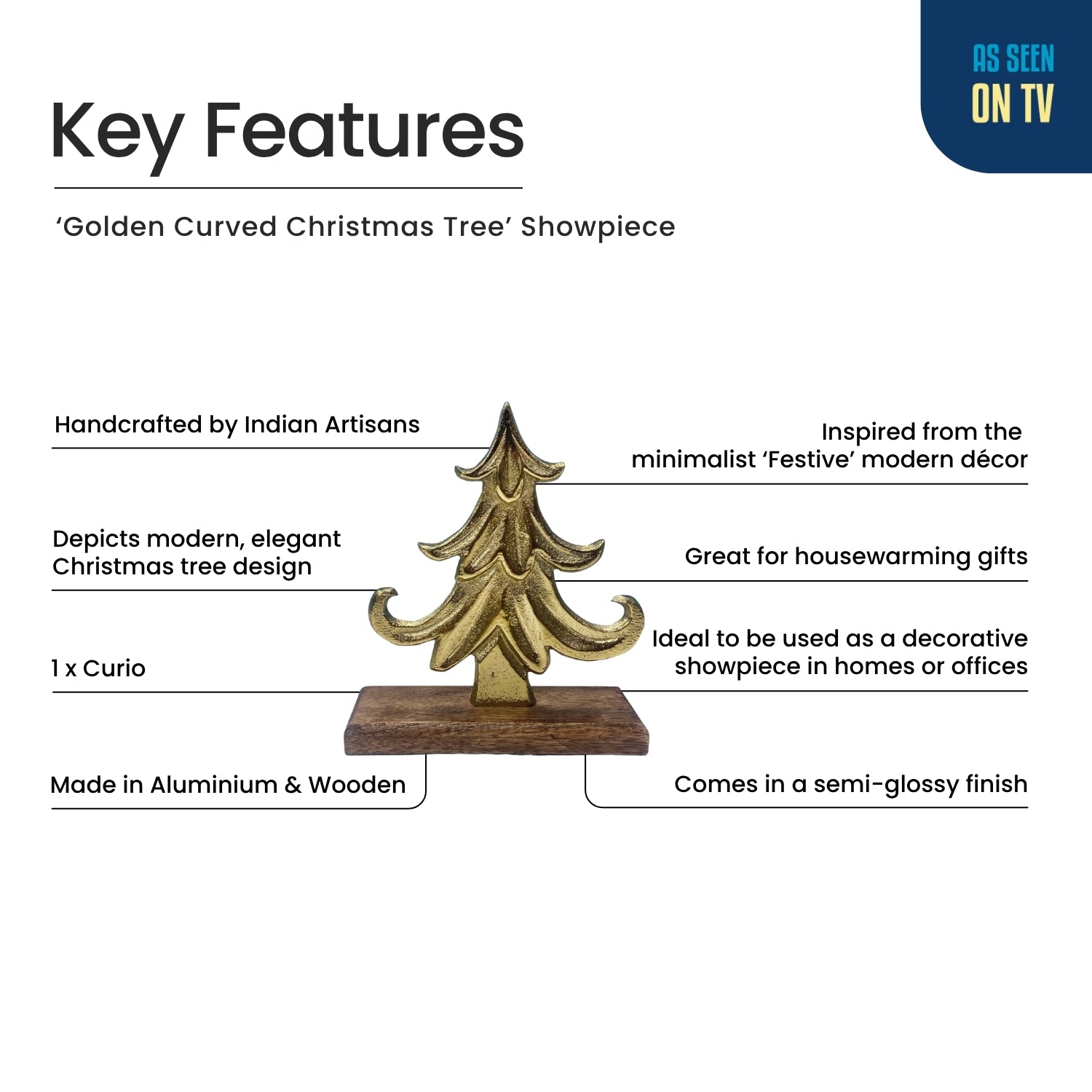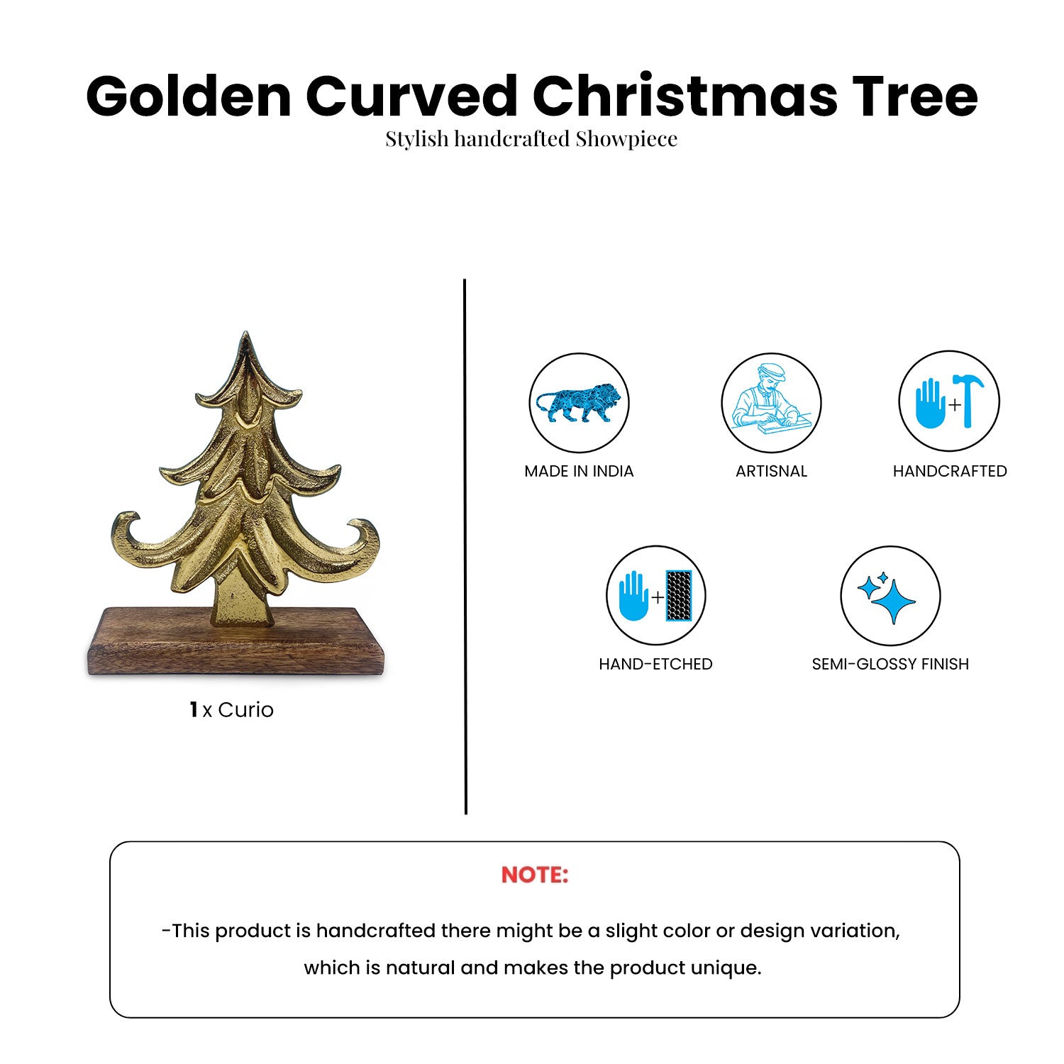 'Golden Curved Christmas Tree' Aluminium Decorative Showpiece Figurine (Hand-Etched, 17.5 Cms