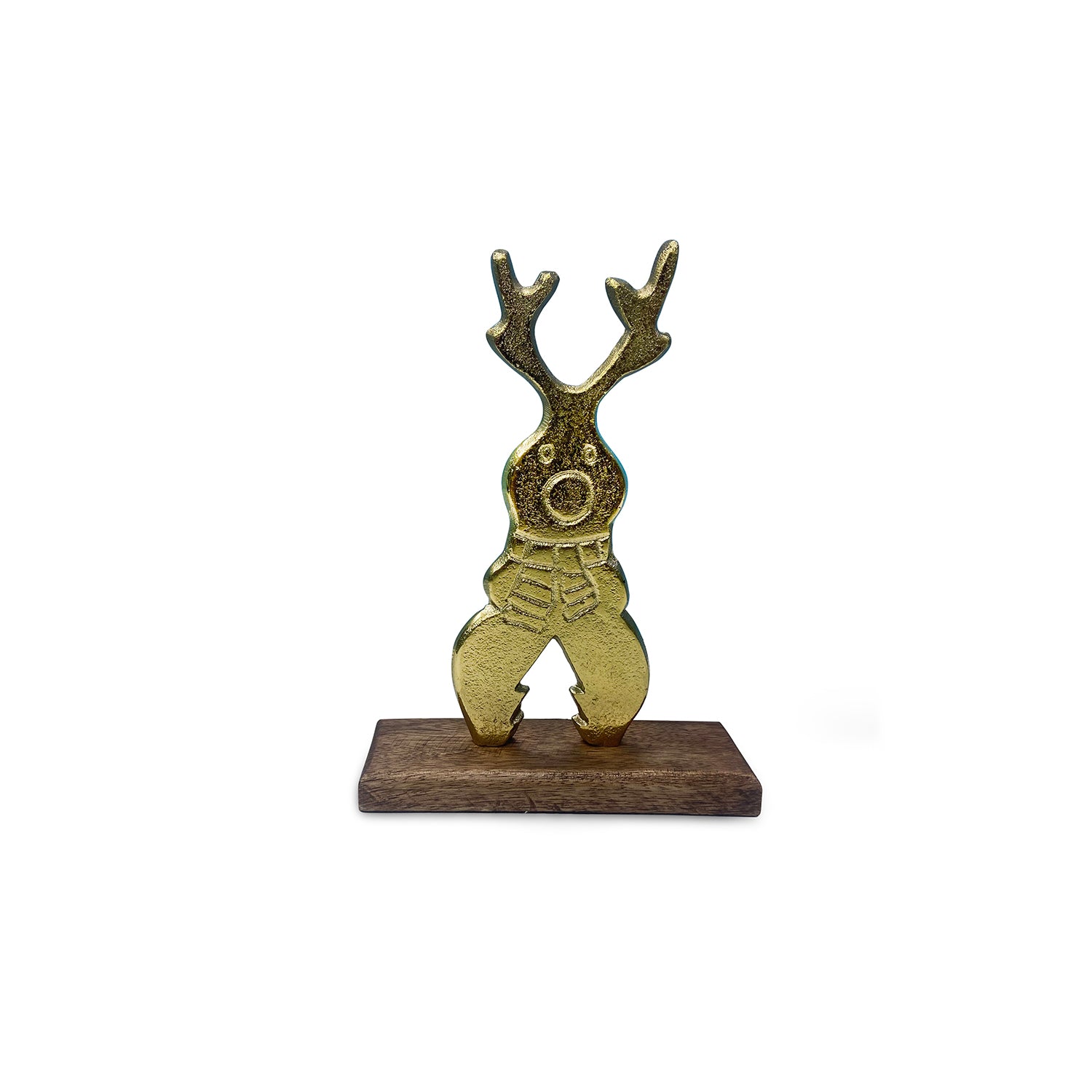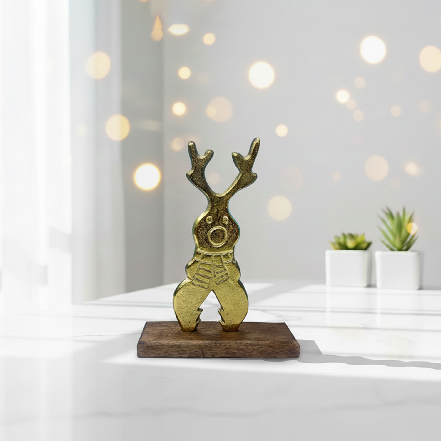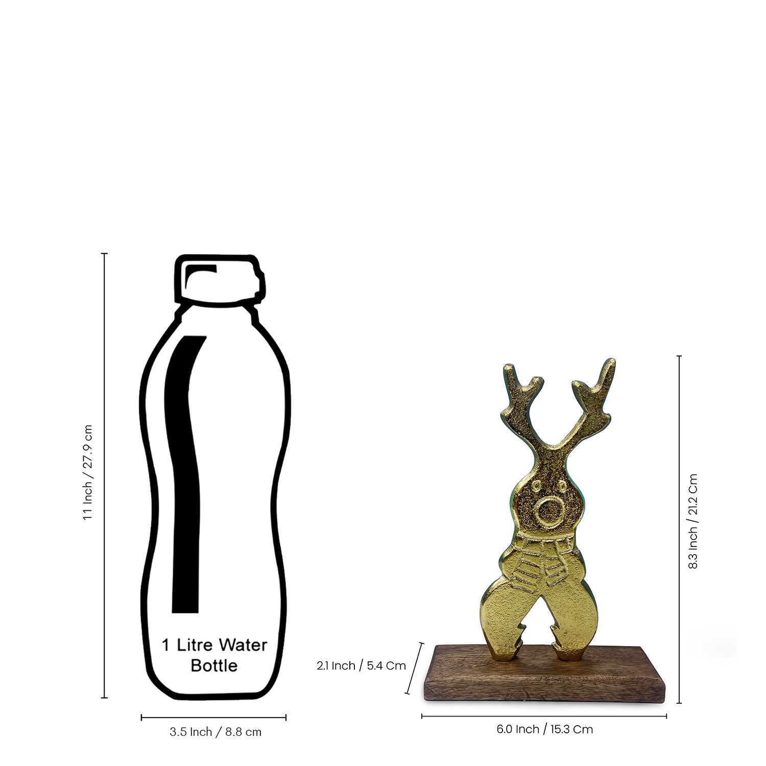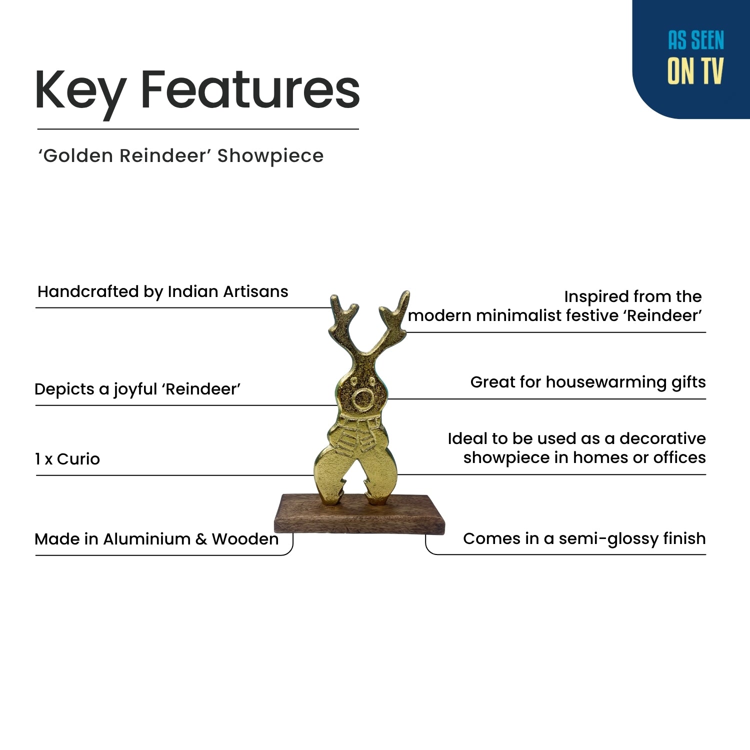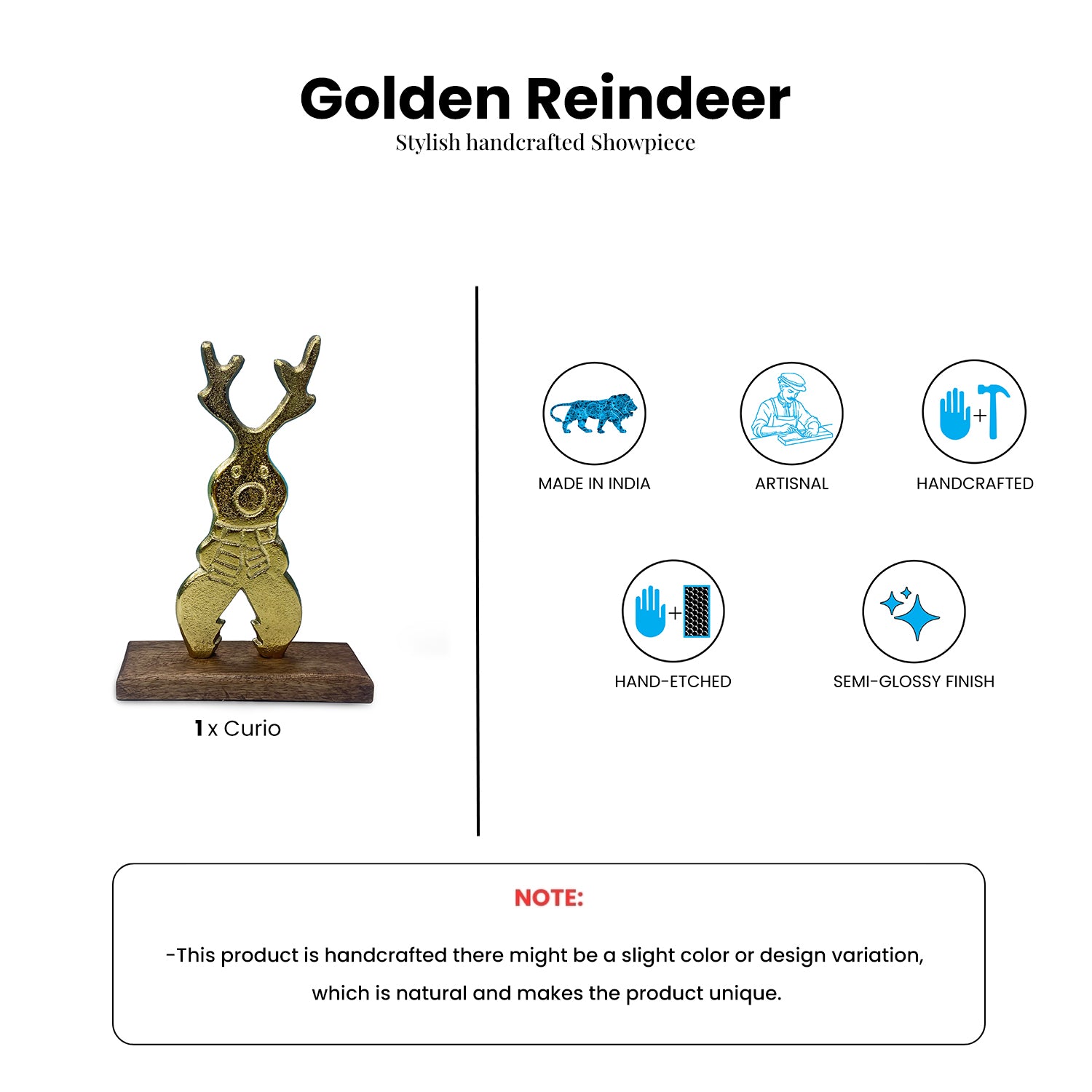 'Golden Reindeer' Aluminium Decorative Showpiece Figurine (Hand-Etched, 21.2 Cm)