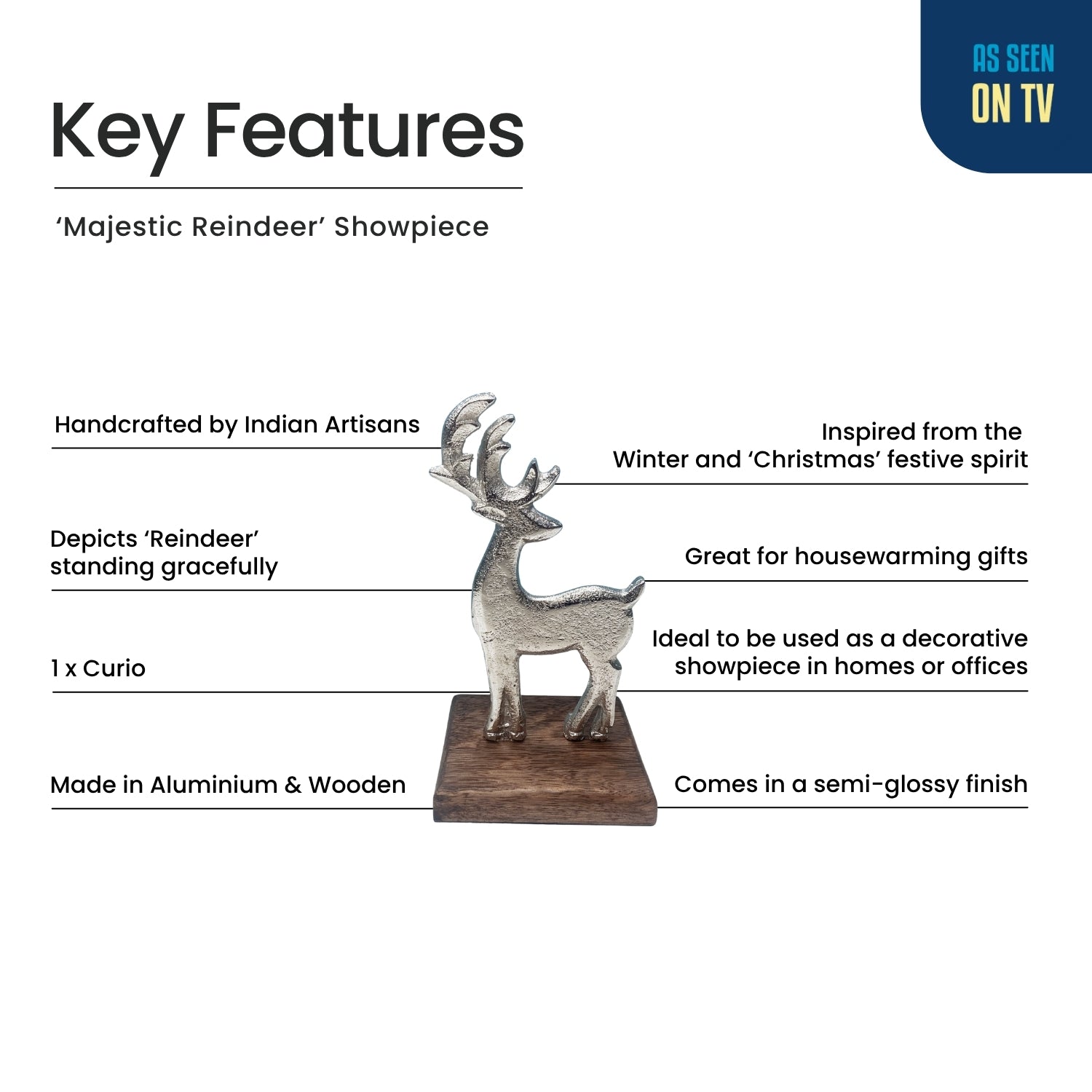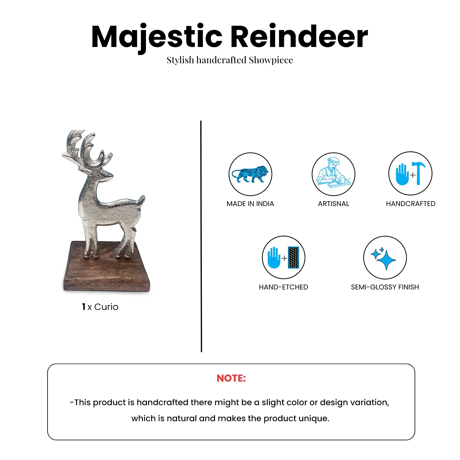 'Majestic Reindeer' Aluminium Decorative Showpiece Figurine (Hand-Etched, 6.5 Cm)