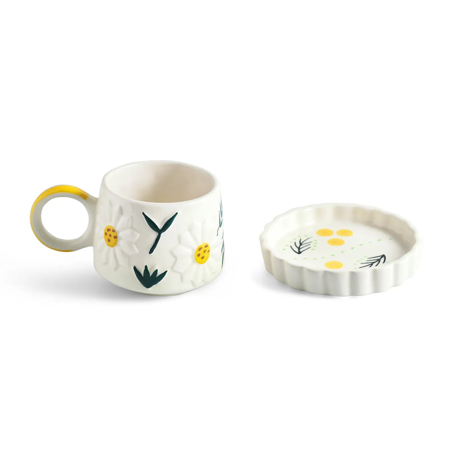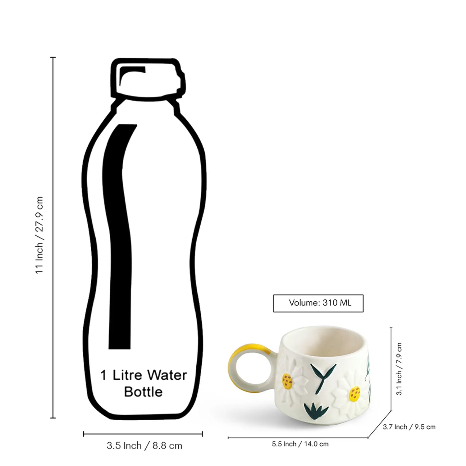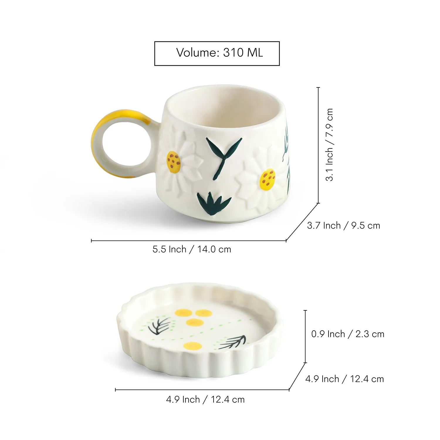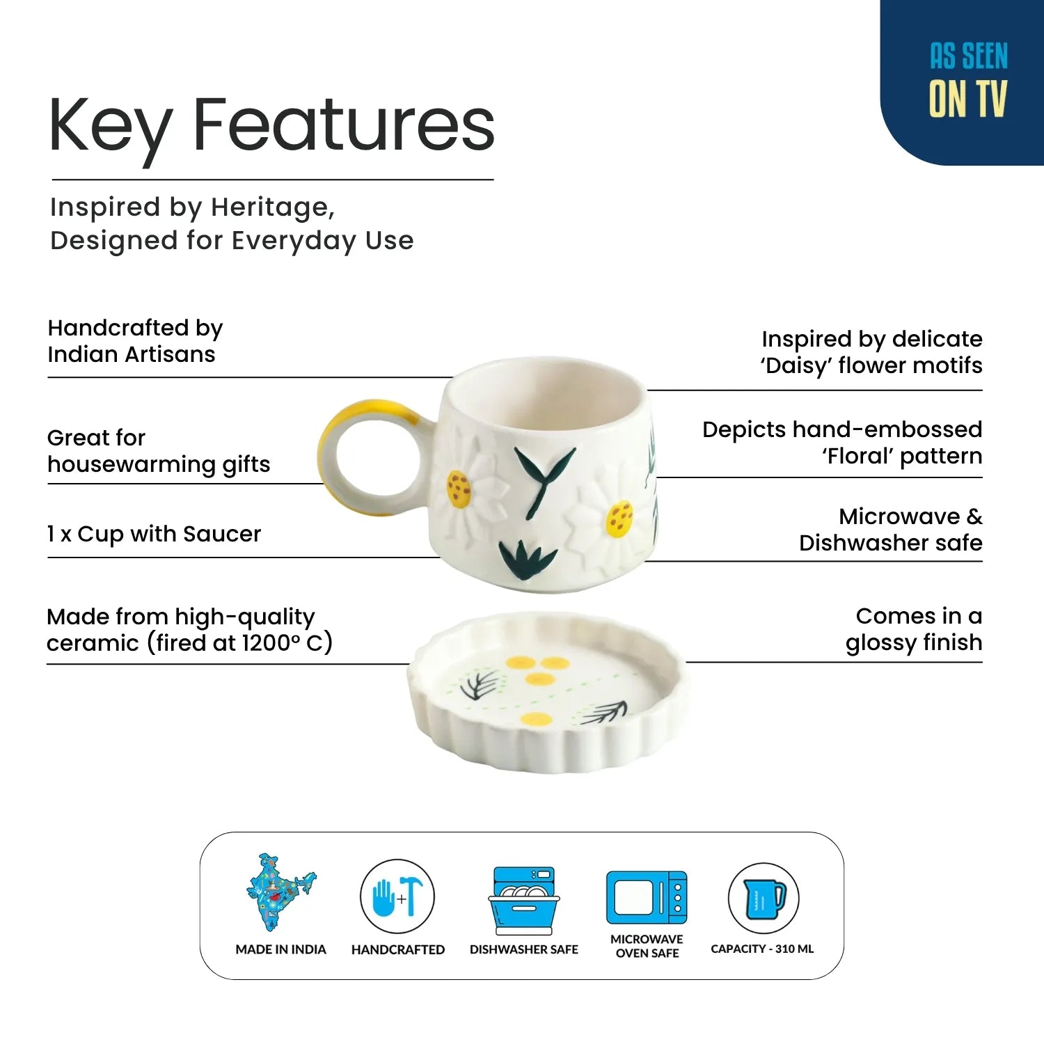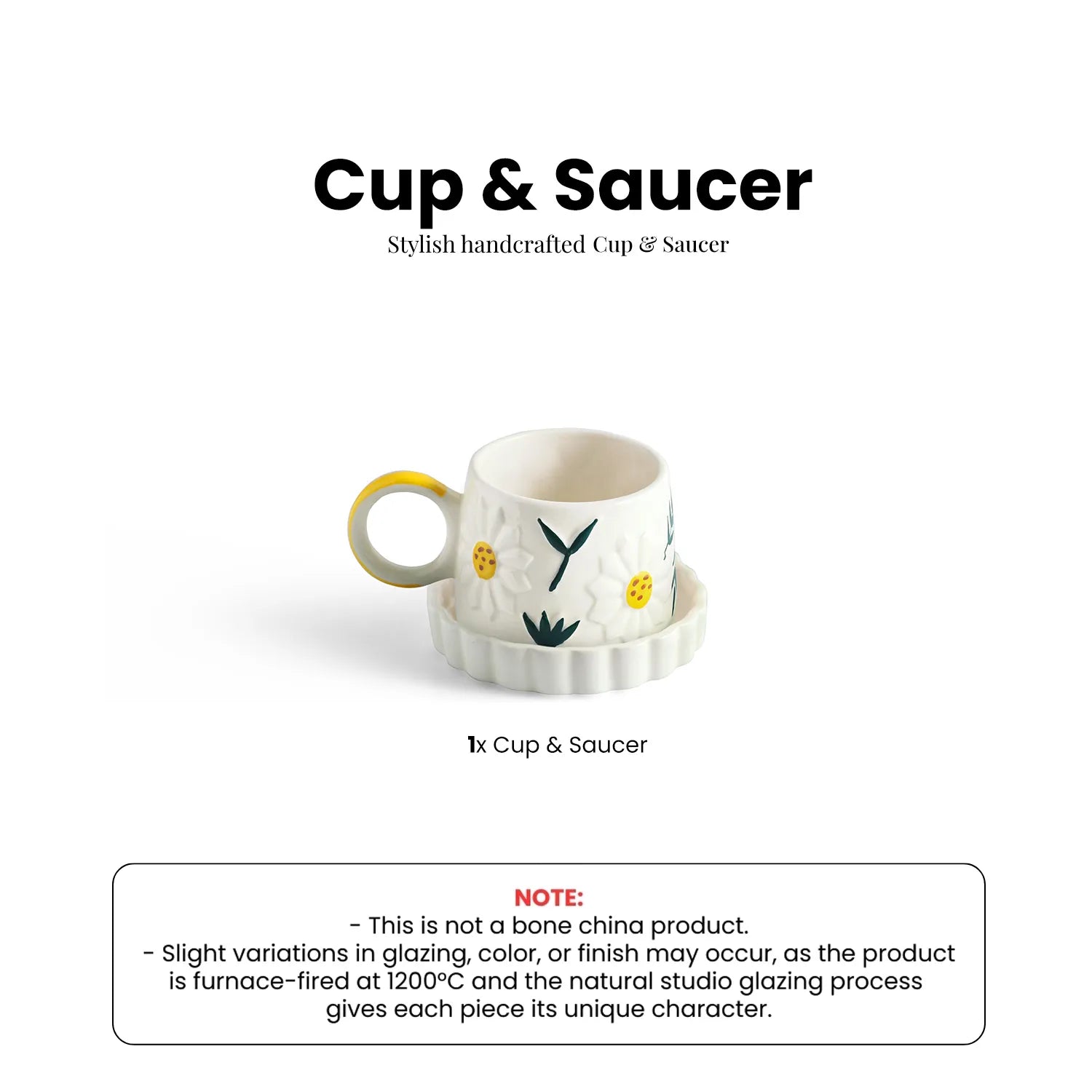 ExclusiveLane 'Floral Bloom' Ceramic Cup & Saucer For Coffee & Tea (310 ML, Microwave Safe, Hand-Painted)