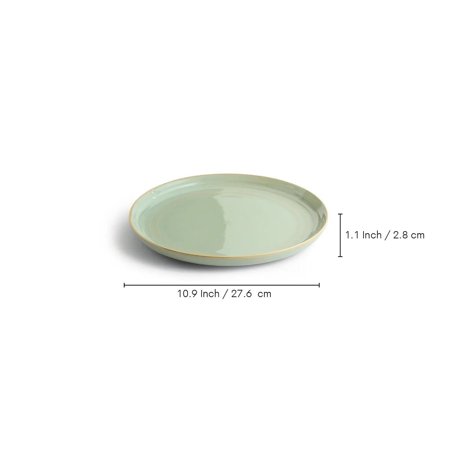 ExclusiveLane 'Sage Serenity' Porcelain Dinner Plates (Set of 4, Microwave Safe, Hand Glazed)